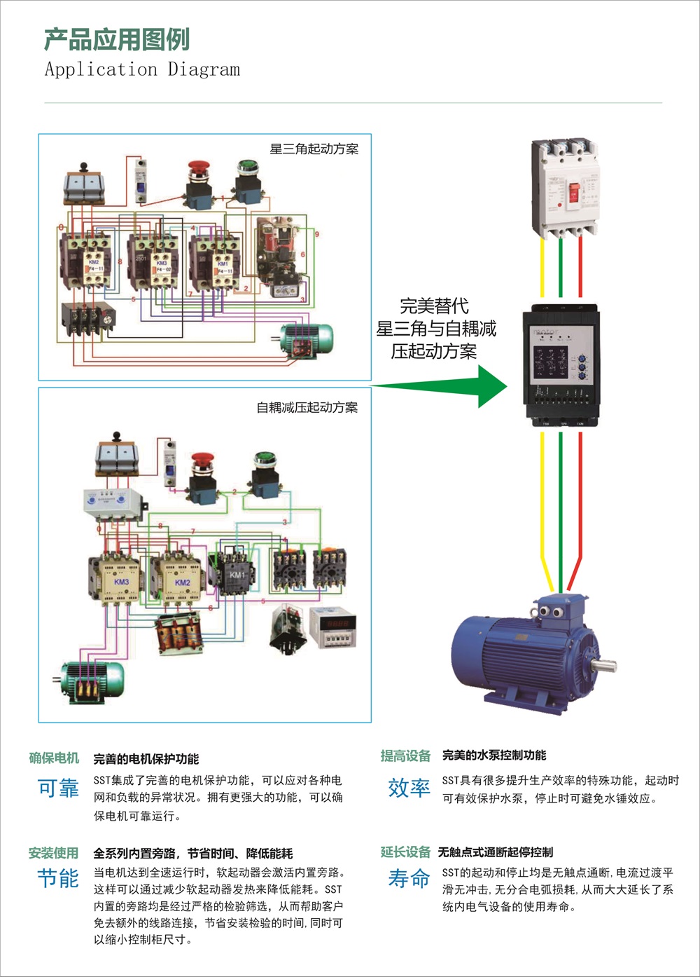 产品规格覆盖0.75-75KW,可应用于各类异步鼠笼电机负载。