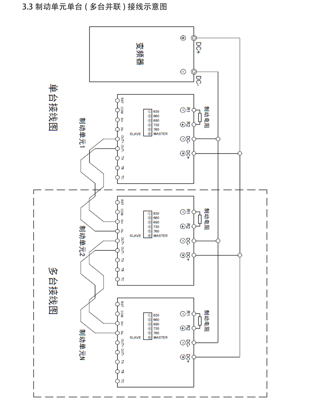 DBMS系列制动单元的作用是将电机在减速的过程中产生的再生能量,以热能的形式消耗在制动电阻上,以产生足够的制动转矩,从而改善变频器的制动性能及缩短变频器的制动时间。